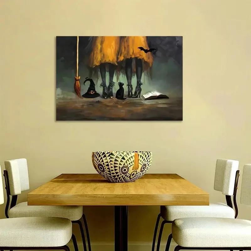 Abstract Retro Witch Canvas Print Halloween Witchcraft Cosplay Wall Art Poster for Home Office Bedroom Dining Room Decor Cuadros
