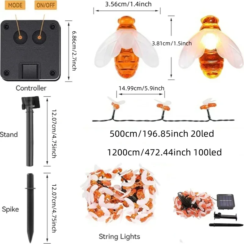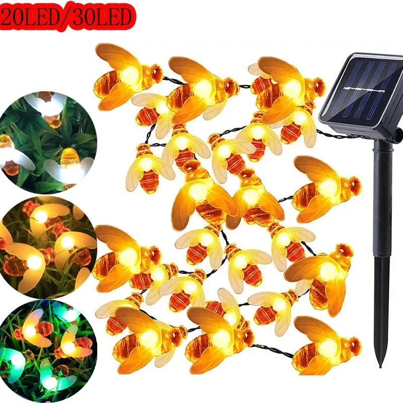LED Solar Mini Honey Bee Shape Led String Lights Outdoor Waterproof Lights Decoration Patio Holiday Party Garden Led Decoration
