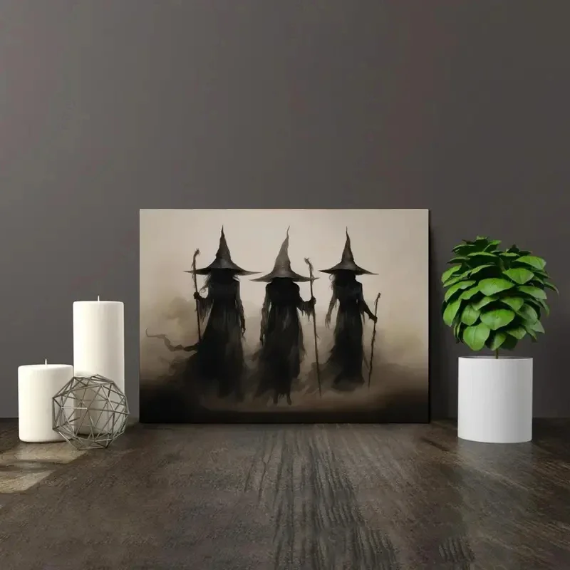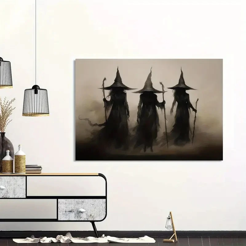 Retro Witch Halloween Canvas Prints Abstract Witchcraft Cartoon Cosplay Wall Art Poster for Family Bedroom Office Decor Cuadros